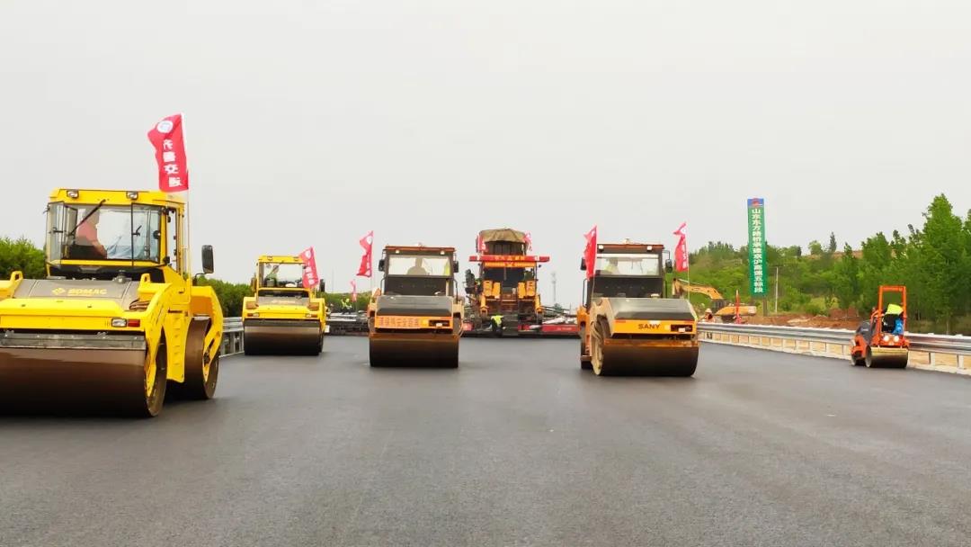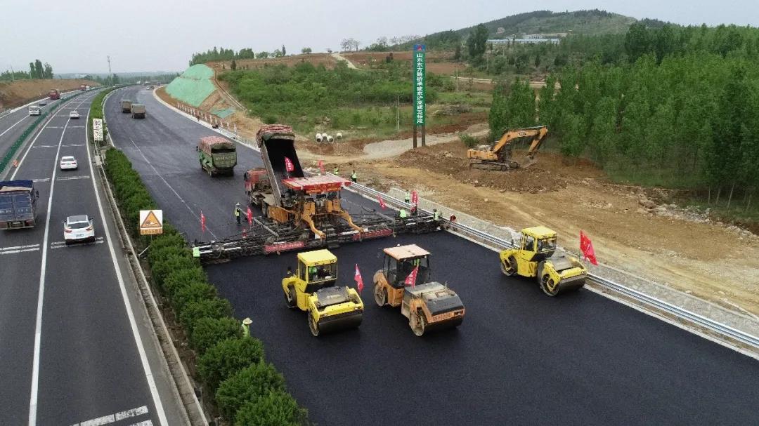 从下午15:38开始,经过施工人员连续四个小时的紧张奋战,京沪五标沥青上面层试验段顺利铺筑,为下一步大面积、连续性沥青摊铺施工提供了重要技术参数和现场操作经验,标志着本标段路面工程建设已进入全面冲刺阶段。