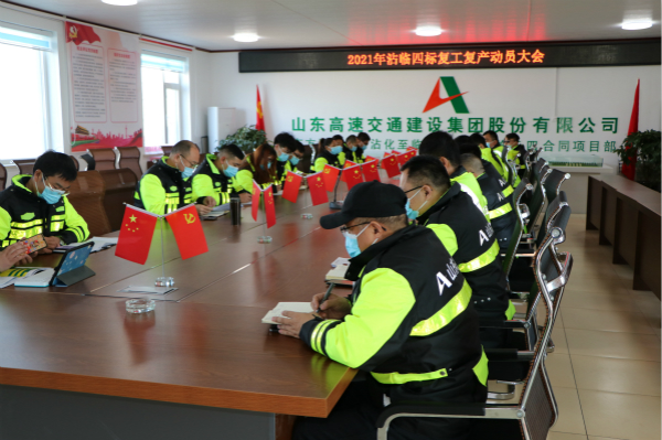四是明确重点,确定任务目标。为顺利实现2021年年度目标,项目部于2月18日上午在会议室召开了复工复产动员大会,项目经理李圣彬明确年度目标:力争主线通车,努力实现目标总产值8亿元。并作了动员,鼓励全体人员发扬铁军精神,以饱满的斗志、昂扬的士气迎接新的挑战,保质保量完成2021年施工任务。