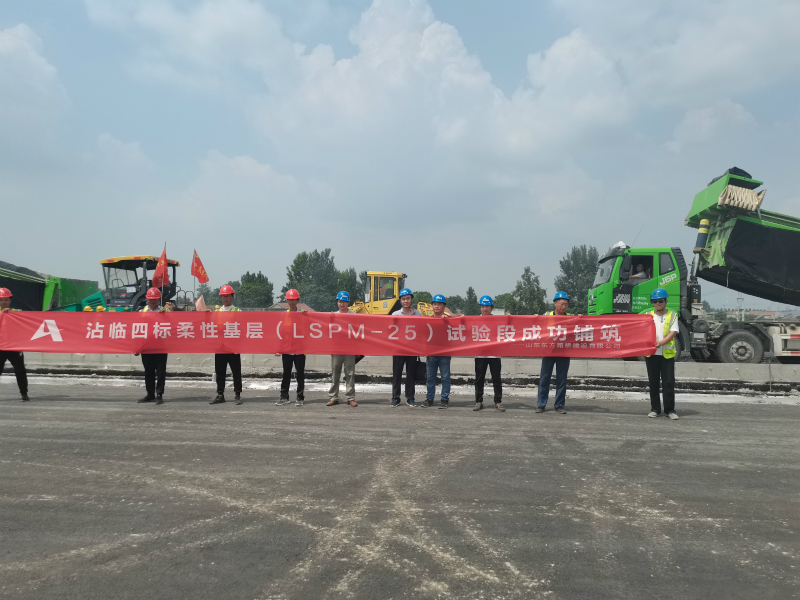 这次柔性基层试验段的成功摊铺,不仅检验了路面事业部沾临分部的施工组织与协调能力,同时加强了各工序之间的衔接配合,使拌和工艺、运输方式、摊铺和碾压工序之间更加默契,为全面展开沥青路面大规模连续施工作业奠定了坚实的基础。