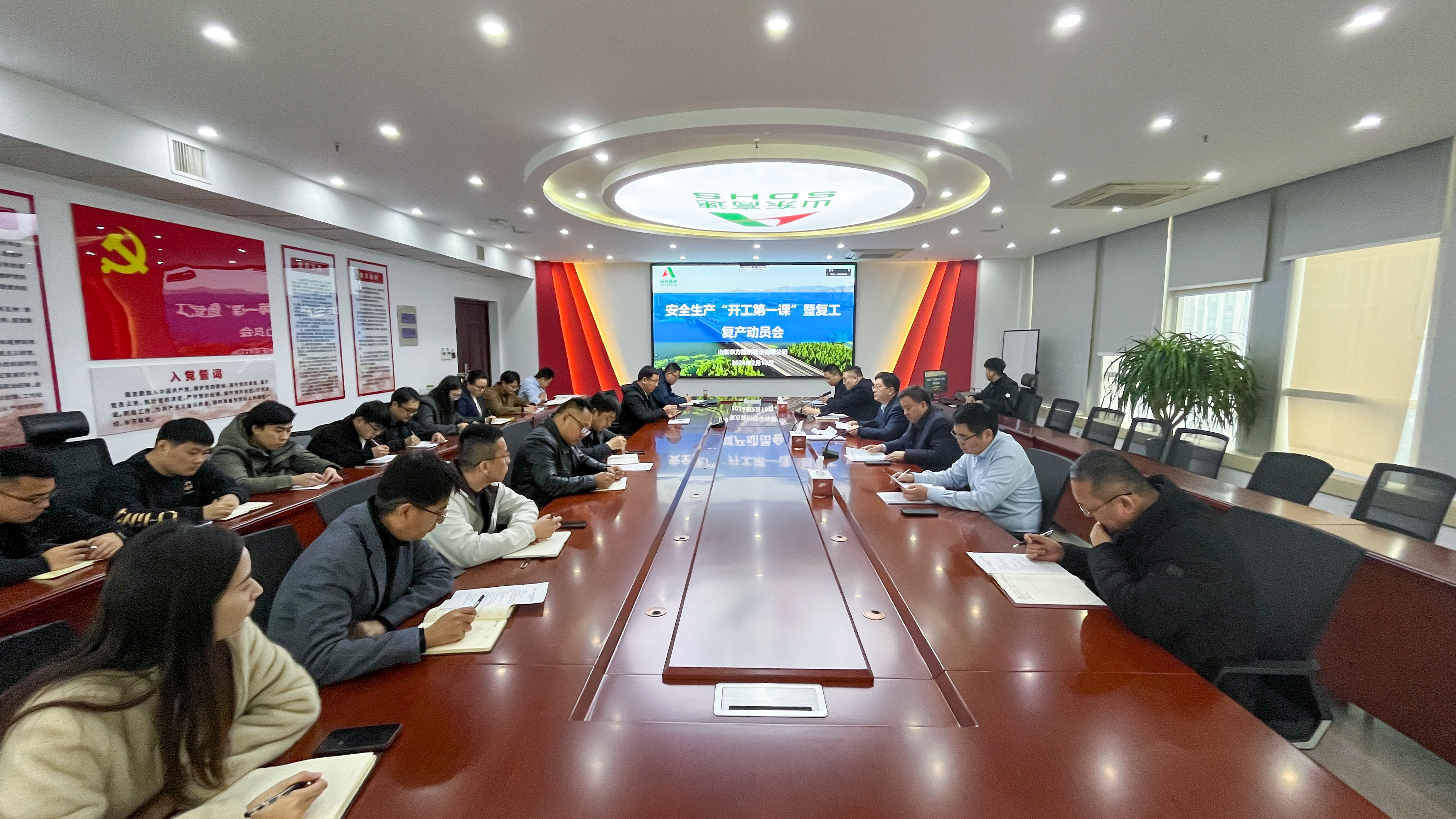 公司领导班子、本部各部室负责人及全体职工参加会议,各项目部视频参会。