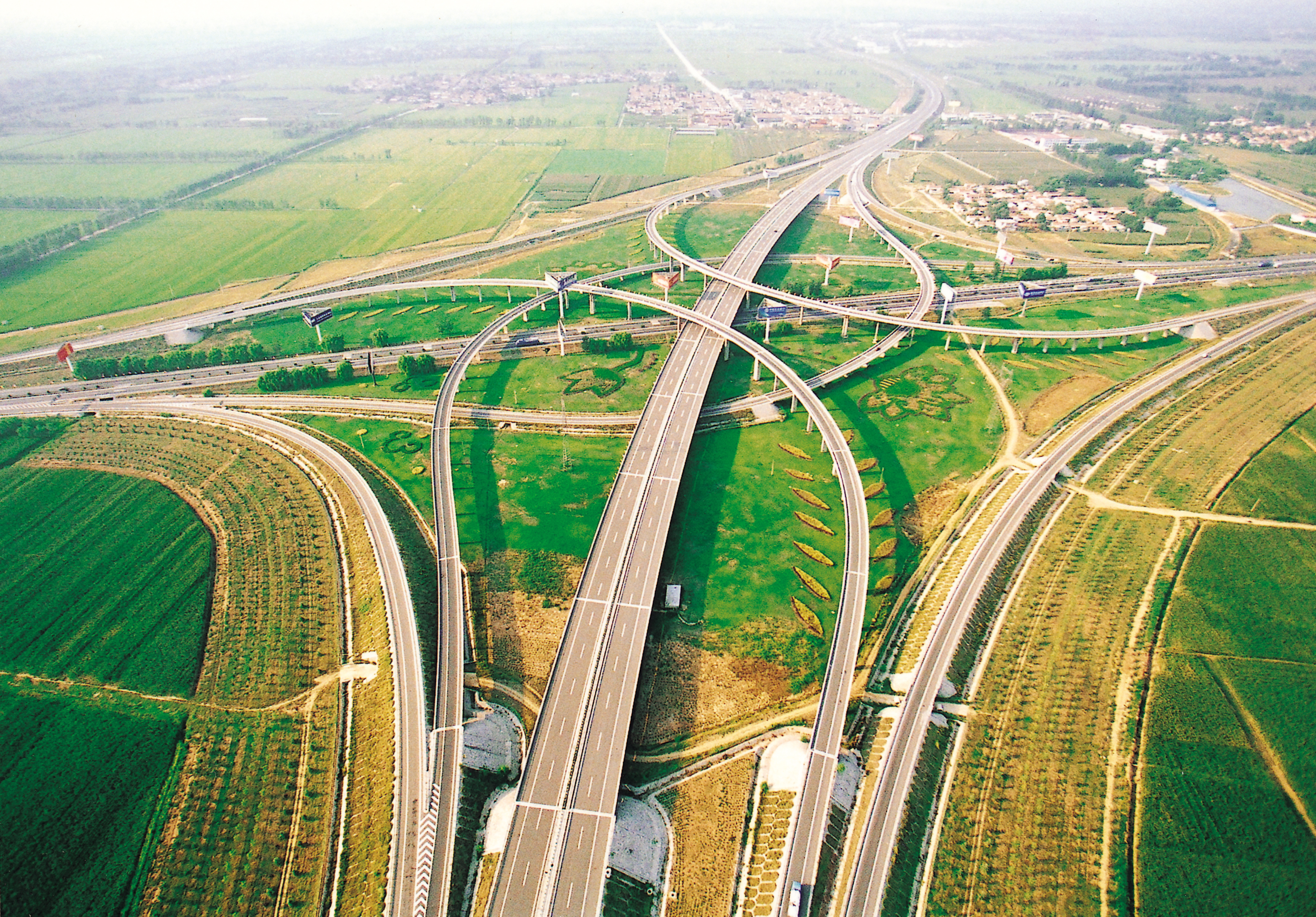 济南至青岛高速公路,山东第一条高速公路,东方路桥公司承建了第一、二、七合同段,以高质量快速度的优异成绩,被省委省政府授予“沂蒙铁军”称号。该工程也获得交通部优质工程奖。图为第一合同段小许家立交桥。