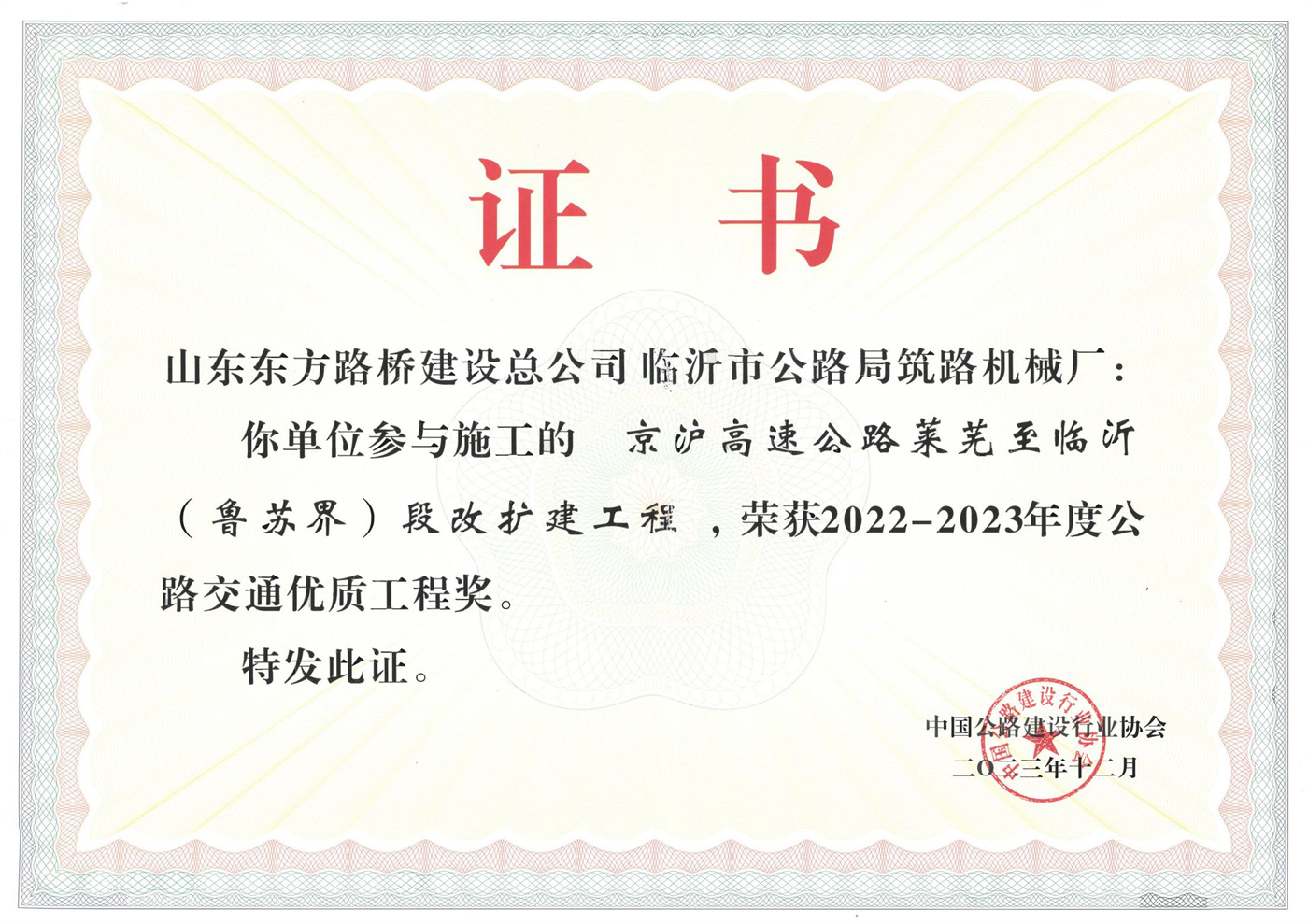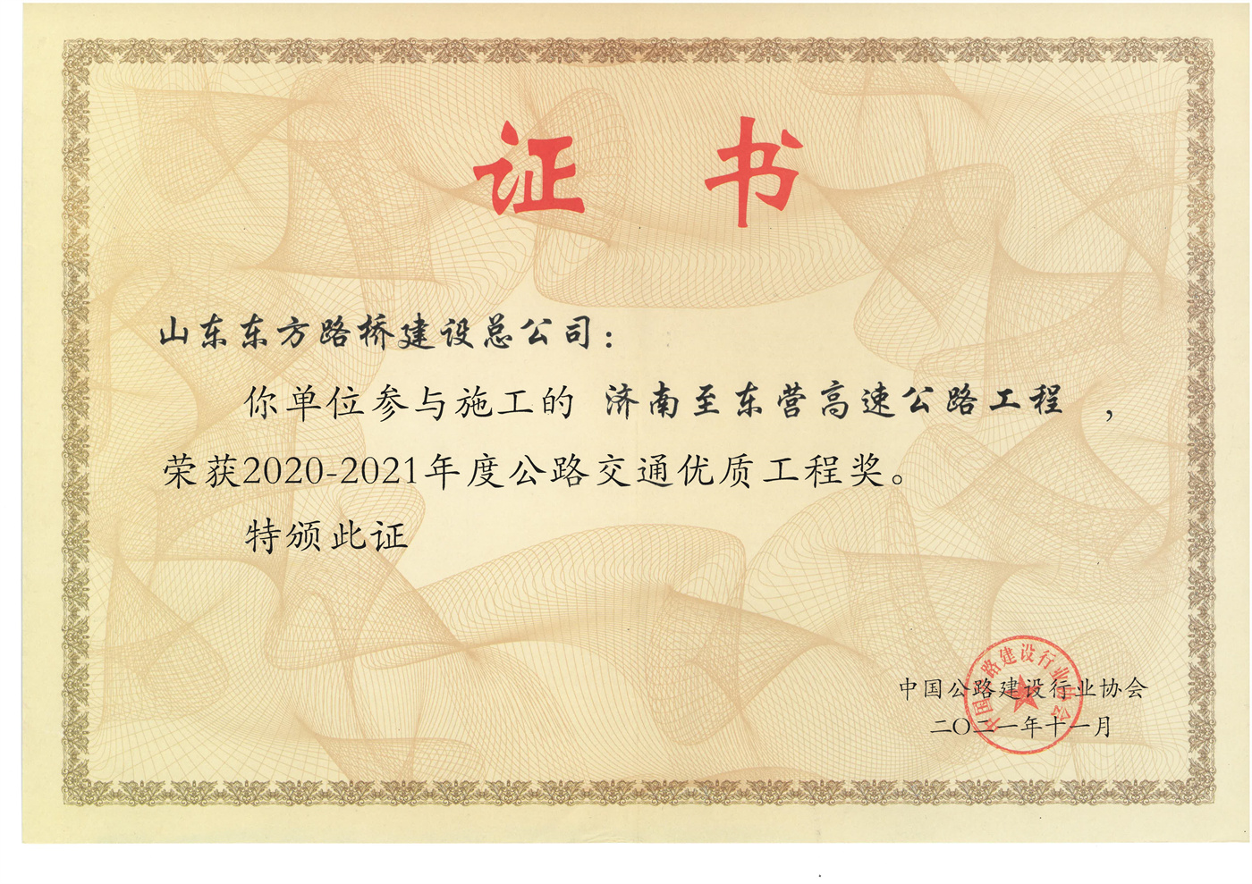 2021济东李春奖证书