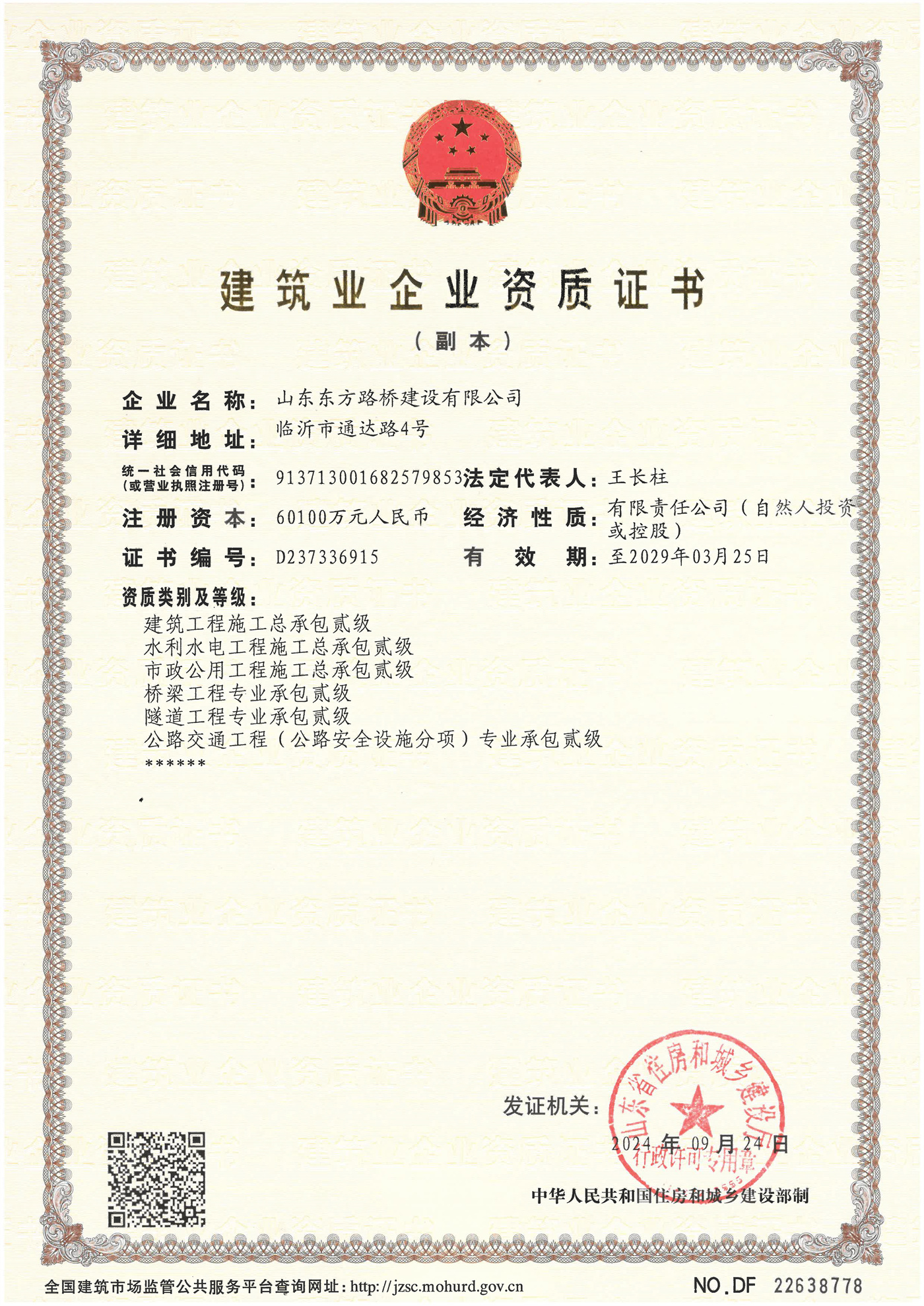建筑业企业资质证书