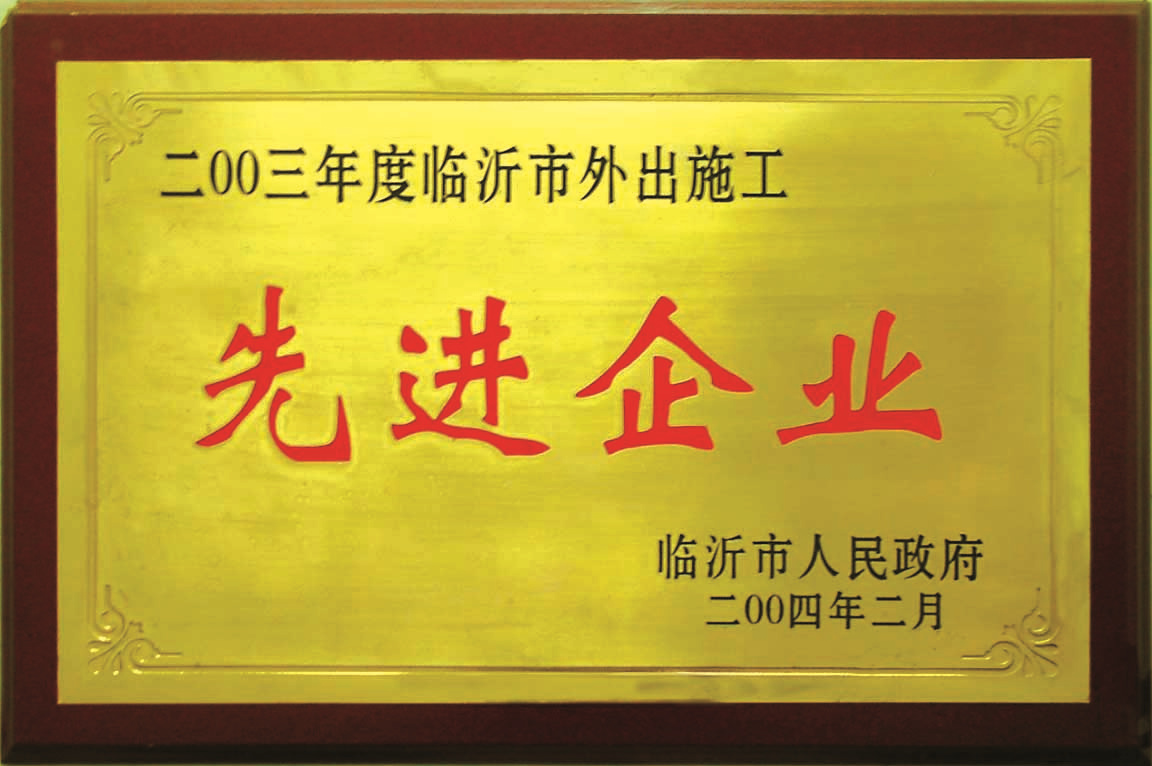 2004年,荣获临沂市政府授予的外出施工“先进企业”荣誉称号