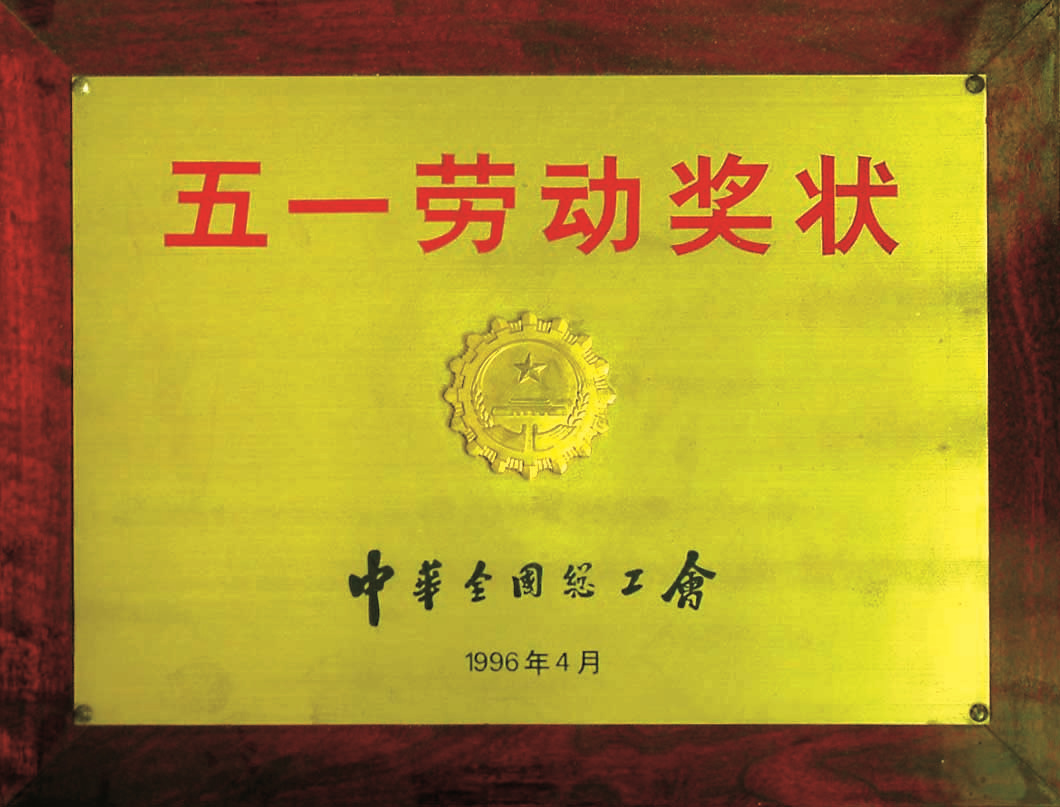 1996年,荣获中华全国总工会总工会授予的“全国五一劳动奖状” -