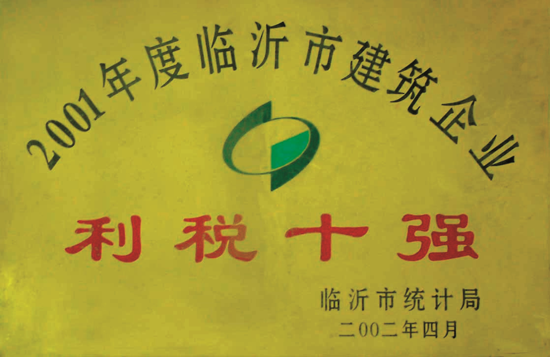 2002年,荣获临沂市统计局授予的——“利锐十强(2001年度临沂市建筑企业)”荣誉奖项 -