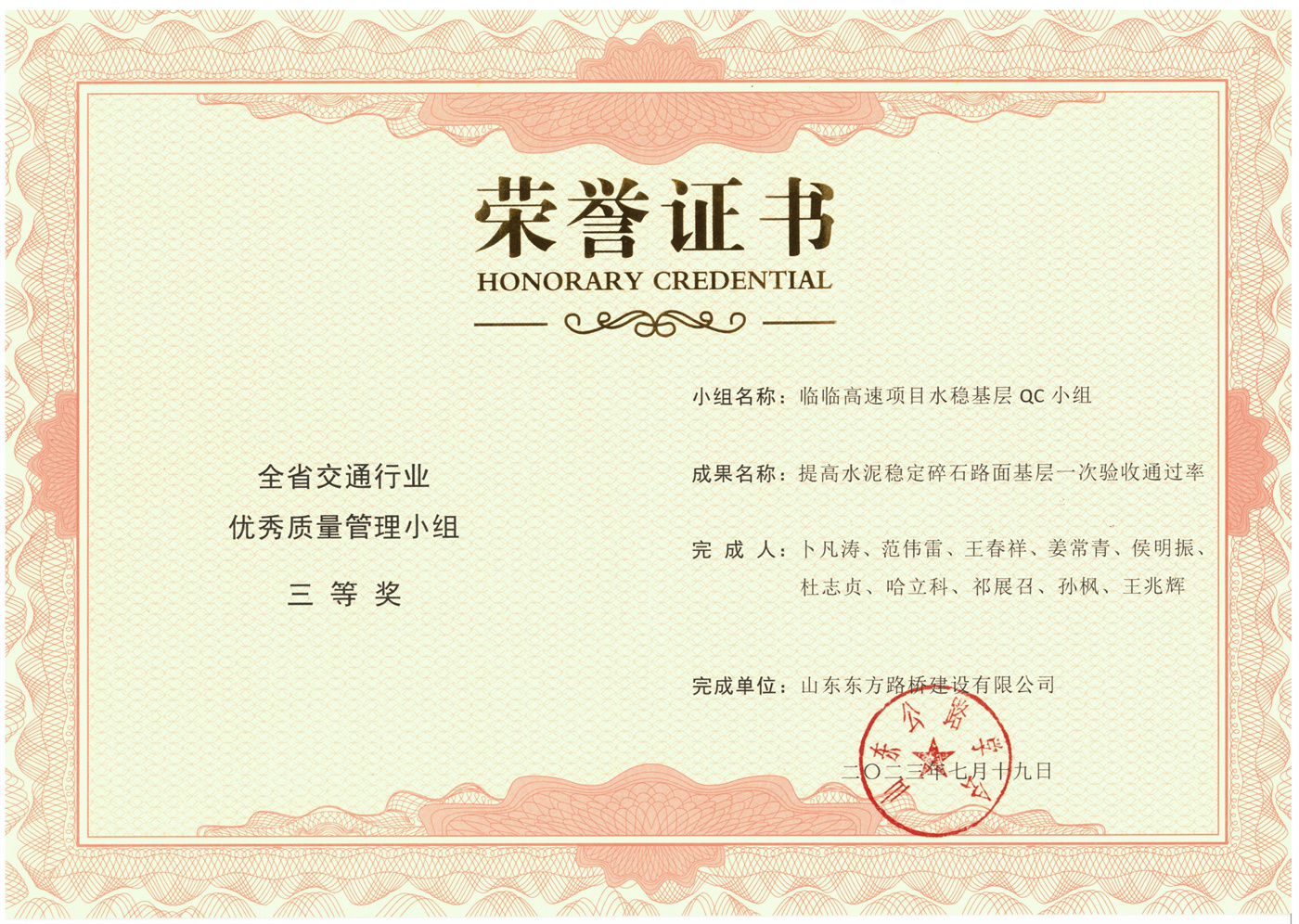 三等奖-提高水泥稳定碎石路面基层一次验收通过率-临临九标三等奖-提高水泥稳定碎石路面基层一次验收通过率-临临九标 -