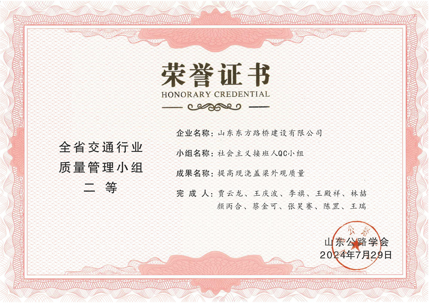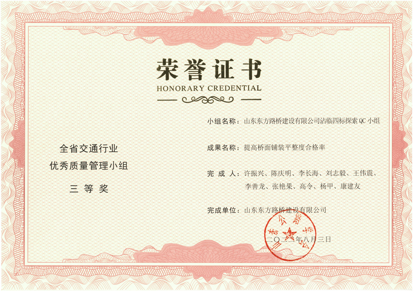 提高桥面铺装平整度合格率--优秀质量管理小组三等奖(探索QC小组)提高桥面铺装平整度合格率--优秀质量管理小组三等奖(探索QC小组)